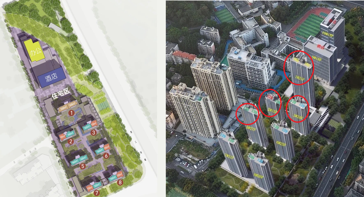 一个CBD板块,最核心的高楼折戟,此外还充斥了高层安置房锦祥佳园,这个没多少年,外立面已经非常突兀。