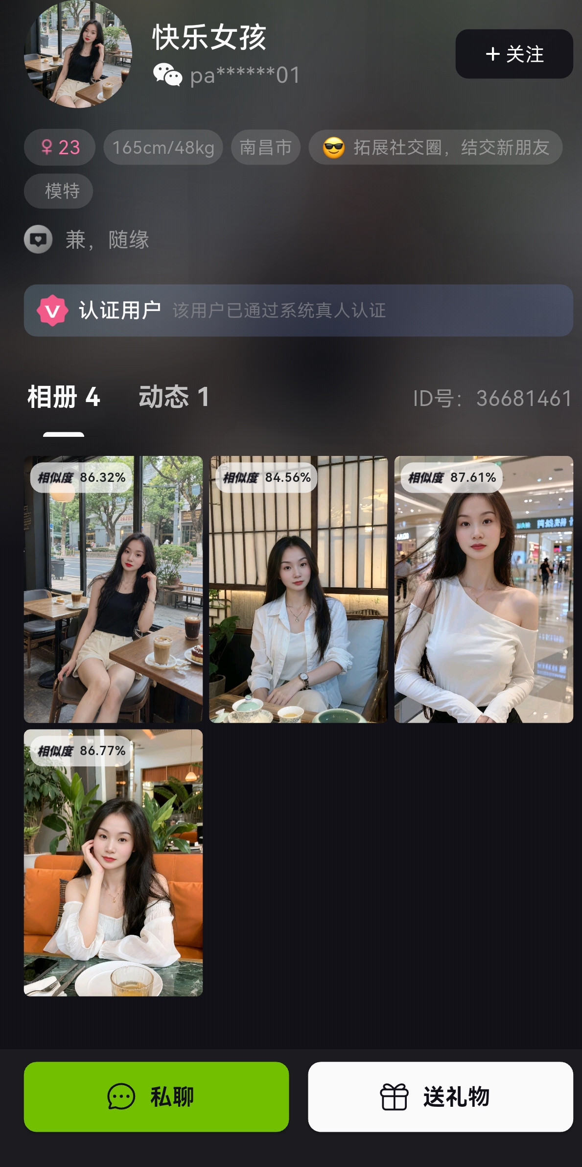 先说说最让人放心的 ——三级实名认证太关键了!身份证、人脸识别再加职业认证,从源头把 “照骗”“骗子” 筛出去,聊的时候根本不用猜对方是不是真人。阿哲匹配到的女生,主页全是带定位的夜拍动态,上周刚去他常去的那家驻唱清吧,连喜欢的特调都一样,这不就是精准撞款?