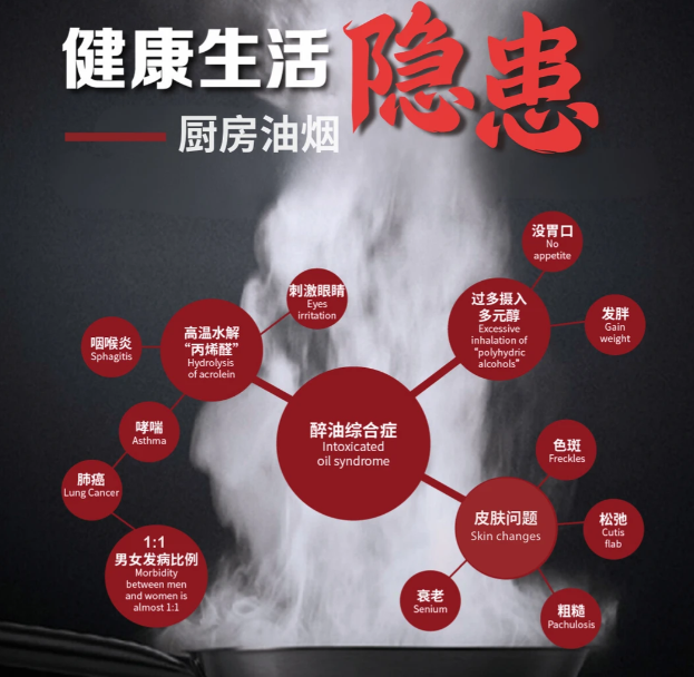 科学研究表明:油烟机的伤害比很多人想象中的还要强大,一次油烟相当于96根烟,含有上百种致癌物质,长时间接触会直接威胁人的健康,甚至要命。
