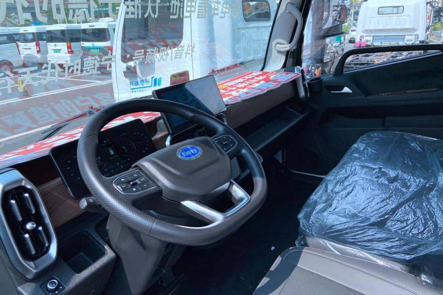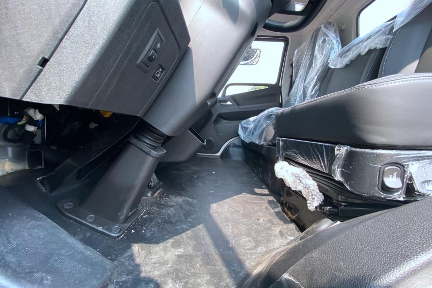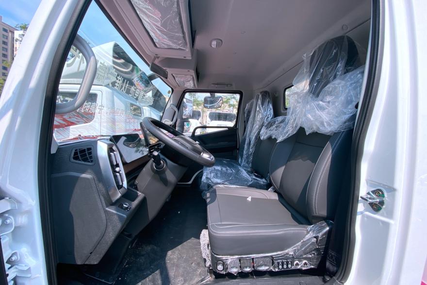 进入驾驶室可以看到,零米轻卡的驾驶室不仅坐姿降低了,还实现了纯平地板,带来了更大也更实用的驾驶室。首当其冲的就是主驾驶这个大减震行程的气囊座椅,还带有通风加热以及多项调节,整体的功能性和舒适性都能媲美重卡座椅。