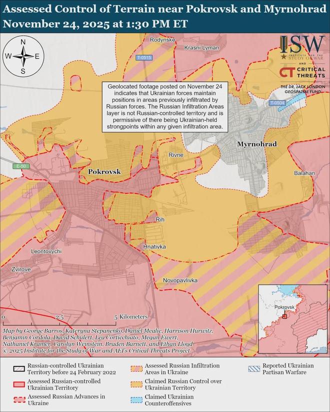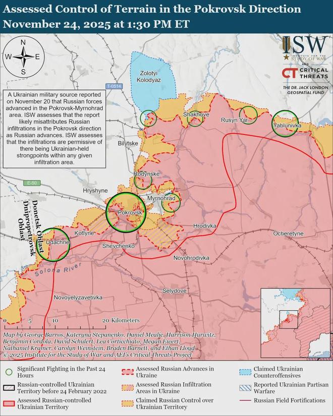 根据美国战争研究所11月24日发布的最新情报,主要有以下关键信息: