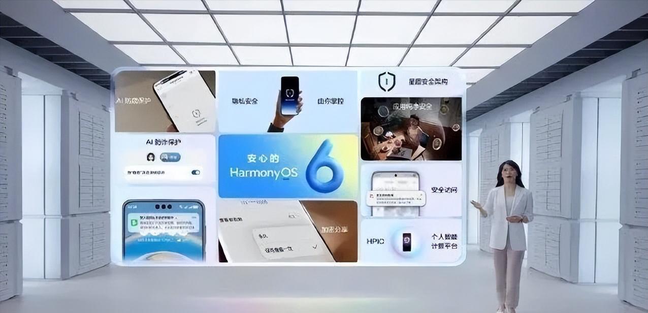 - 家庭防诈升级鸿蒙6 会自动识别诈骗风险,并第一时间同步给家人,带来系统级保障。如果你的家人接到诈骗电话,系统会提醒我们,我们可以远程挂断电话,并且家庭用户一人标记诈骗,全家都会同步。- AI防窥保护升级目前除了防窥提醒,多个应用已支持自动隐藏,有人看你屏幕,会直接隐藏屏幕信息。- 加密分享再升级视频、文档、录音,主流渠道分享均支持加密,指定用户分享,只能指定用户查看,无法截图,分享别人也无法查看,且支持次数限制模式,如果限制1次,看过1次后则无法再查看。- HPIC个人智能计算平台上云的数据用完即删不保存,AI服务的信息安全得到全面保障。题外话:我大哥于和伟拍的鸿蒙6隐私保护TVC,帅爆了!【比丝滑更流畅】