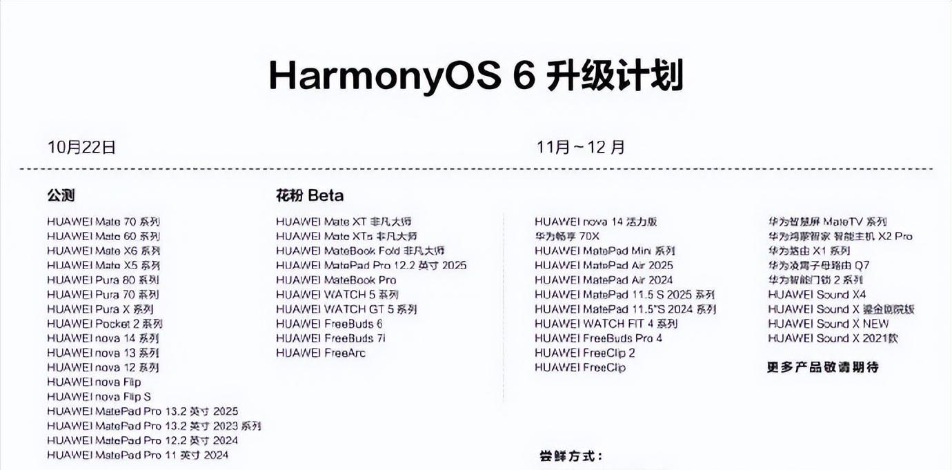 【其他】- 鸿蒙电脑企业版即将上市,依托于鸿蒙6更强大更智能。- 有问题找小艺今日正式上线,大家可以通过小艺进行反馈使用问题。- 首批90款机型开启升级申请。最后,不禁感慨,刚刚公测仅1年,鸿蒙5终端数量就突破了2300万台,并且带来了众多其他生态看不到的能力。如果,再过个一两年,新麒麟的工艺制成再往上走走,那时的华为会是什么样子?总结一句话:能超越鸿蒙的只有下一代鸿蒙。