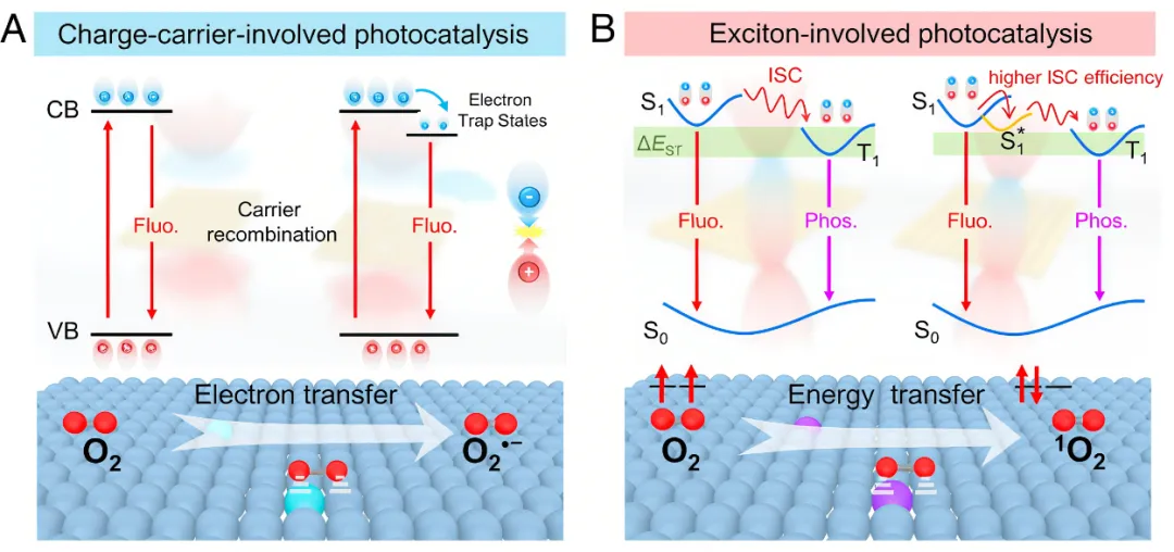 快速的表面化学反应包括反应物的吸附、光催化剂与反应物之间的电荷转移,以及产物的脱附。在光催化过程中,活性增强归因于光吸收增强、活性位点数量增加,或光生载流子的分离与传输加速。