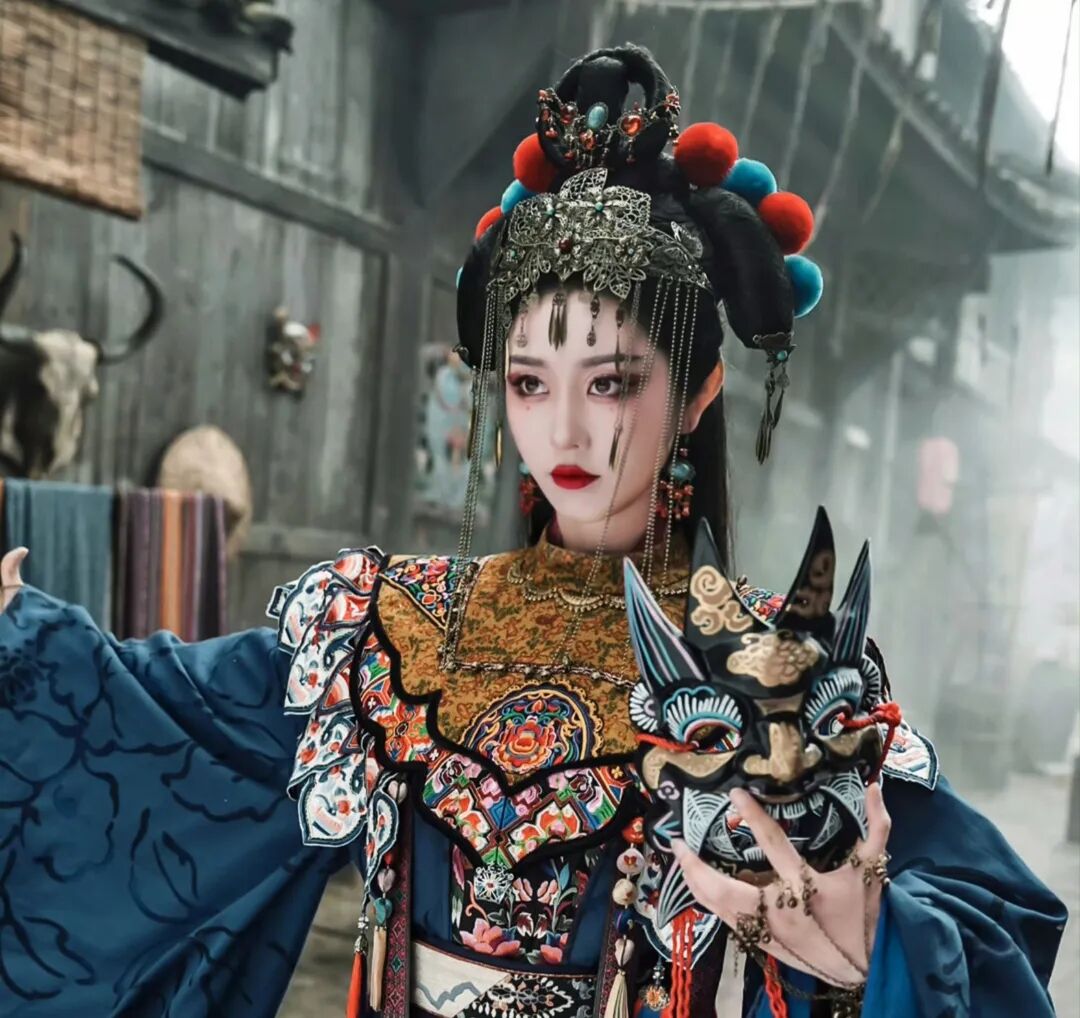 这部短剧从“傩戏”中采撷了两个重要符号:面具和舞蹈。观众能够看到剧中的“老祖宗”沈小姐,把傩戏演绎得极为精彩。剧中的演员们佩戴面具,身着民族服饰,跳出了这类舞蹈宝相庄严的一面,带来一种摄人心魄的美。