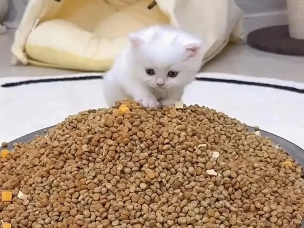 幼猫基本断奶后,肠胃功能和牙齿发育已趋于完善,可直接喂食干猫粮。
