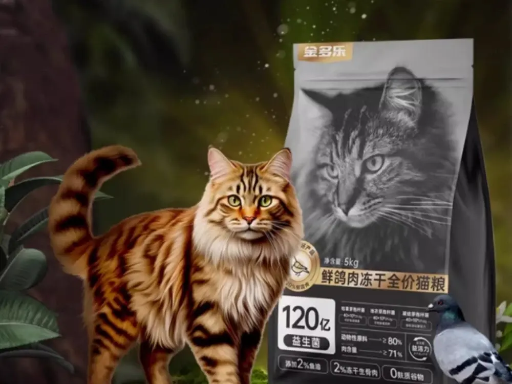 金多乐这款猫粮是典型的膨化粮,另外它额外加了冻干,既有膨化粮的饱腹感,又能靠冻干提适口性。具体看原料,金多乐膨化粮部分主要用了鸽肉、鸡肉、牛肉这几种肉,还加了豌豆;冻干则是以鸡肉为主的。颗粒设计成了带孔的甜甜圈样式。原料溯源这块做得还算实在,主要原料的来源都能查到,产品详情页上会明确标肉源出处,买的时候能清楚知道食材来自哪。不过有个小疑问得提一下:配料表写着用的是鲜鸡肉,但原料供货商页面里,没标注鲜鸡肉的具体来源,反而标了鸡肉粉的来源。