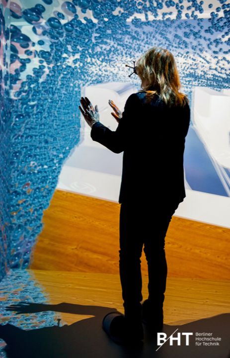 在柏林Wedding区的中心,柏林技术学院(BHT)和ART的合作伙伴WE are XR GmbH 和more3D GmbH & Co. KG 创造了一个安静而有影响力的实验室空间:一个四面CAVE系统(有三面墙和地板投影的虚拟环境),折让学生和研究人员可以走进虚拟空间规划工厂,检查变速箱,甚至模拟生产马苏里拉奶酪的过程。