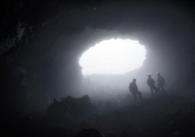 从内部拍摄的意大利火山熔岩管被冰封的样子。