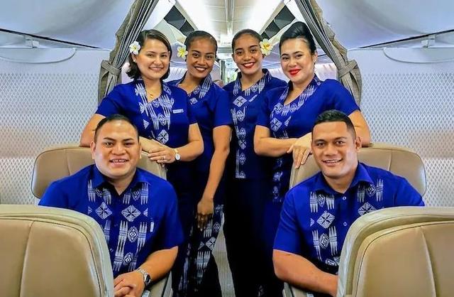 萨摩亚航空的乘务员,这个南太平洋岛国航空只开通了澳大利亚和新西兰航线。