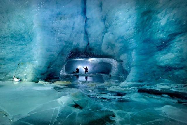 瑞士戈尔纳的蓝色冰洞,经这里可以进入欧洲第二大冰川系统。