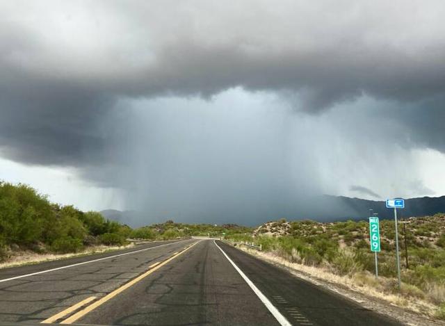 澳大利亚旅游团在途中看见天气突变,远处的暴雨就像是可以一个巨型的天然淋浴。