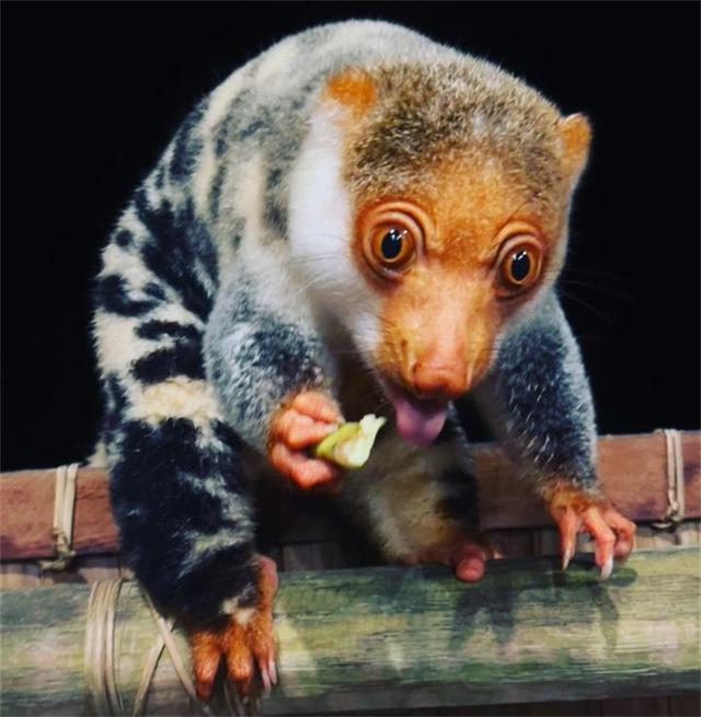 斑袋袋鼠,这是一种害羞的独居动物,拥有长长的可卷曲的尾巴,夜间在树上寻找果实和树叶为生。
