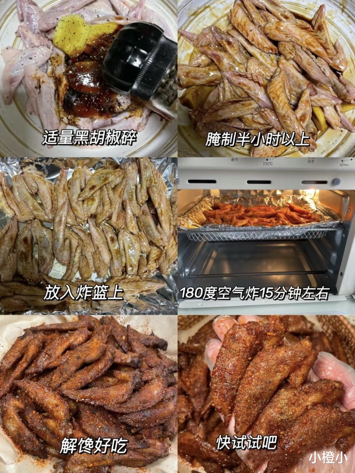 (一)如果快乐有形状,那一定是鸡翅尖的“小三角”!它便宜、耐啃、入味快,简直是厨房社恐星人的社交神器。今天不整高难度,只用空气炸锅+5分钟动手时间,把香辣鸡翅尖做成“看剧伴侣天花板”。全程无油烟、无溅油、无洗锅痛苦,手残党也能原地开店!