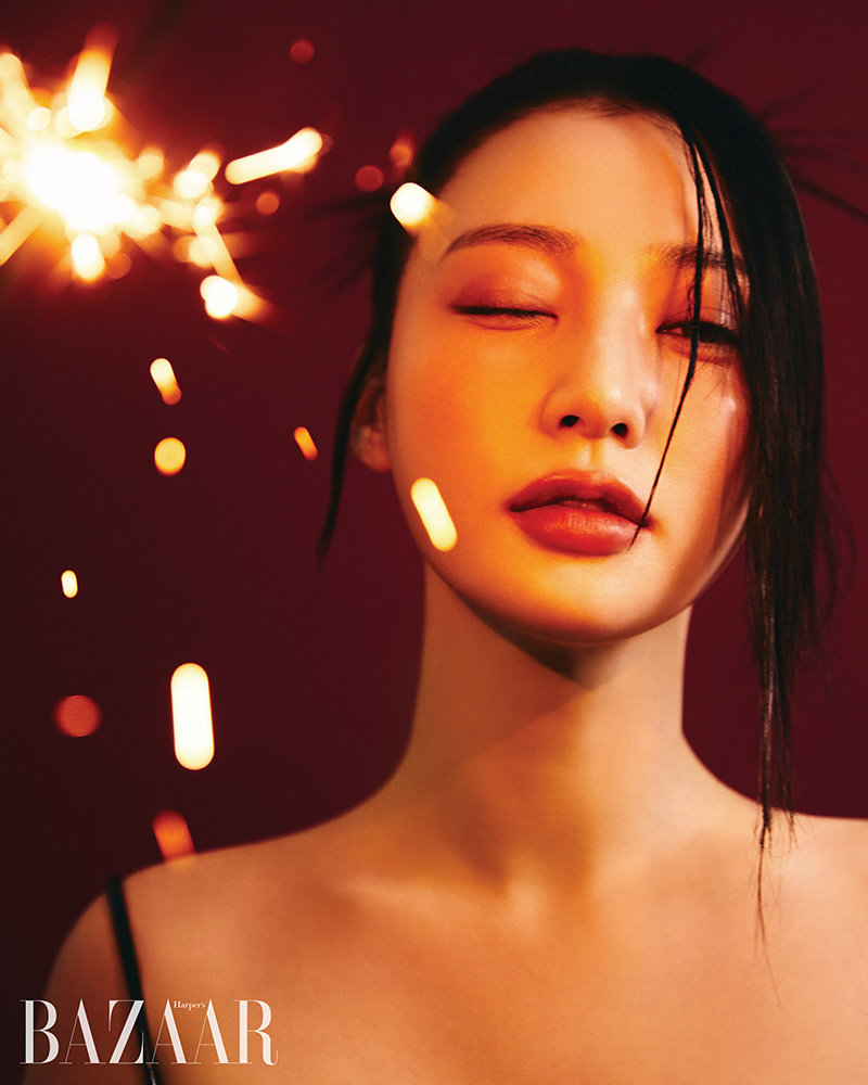 而在近日公开的与时尚杂志《Harper's Bazaarr》一起拍摄的画报中,宋昰昀再次以红色为亮点,展现了果敢、有魄力的形象,吸引了人们的视线。