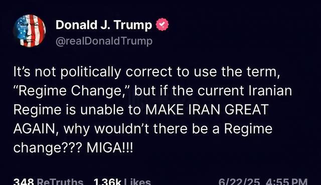 可特朗普却不以为然,甚至还在社交平台上暗示对伊朗的政权更迭很感兴趣: