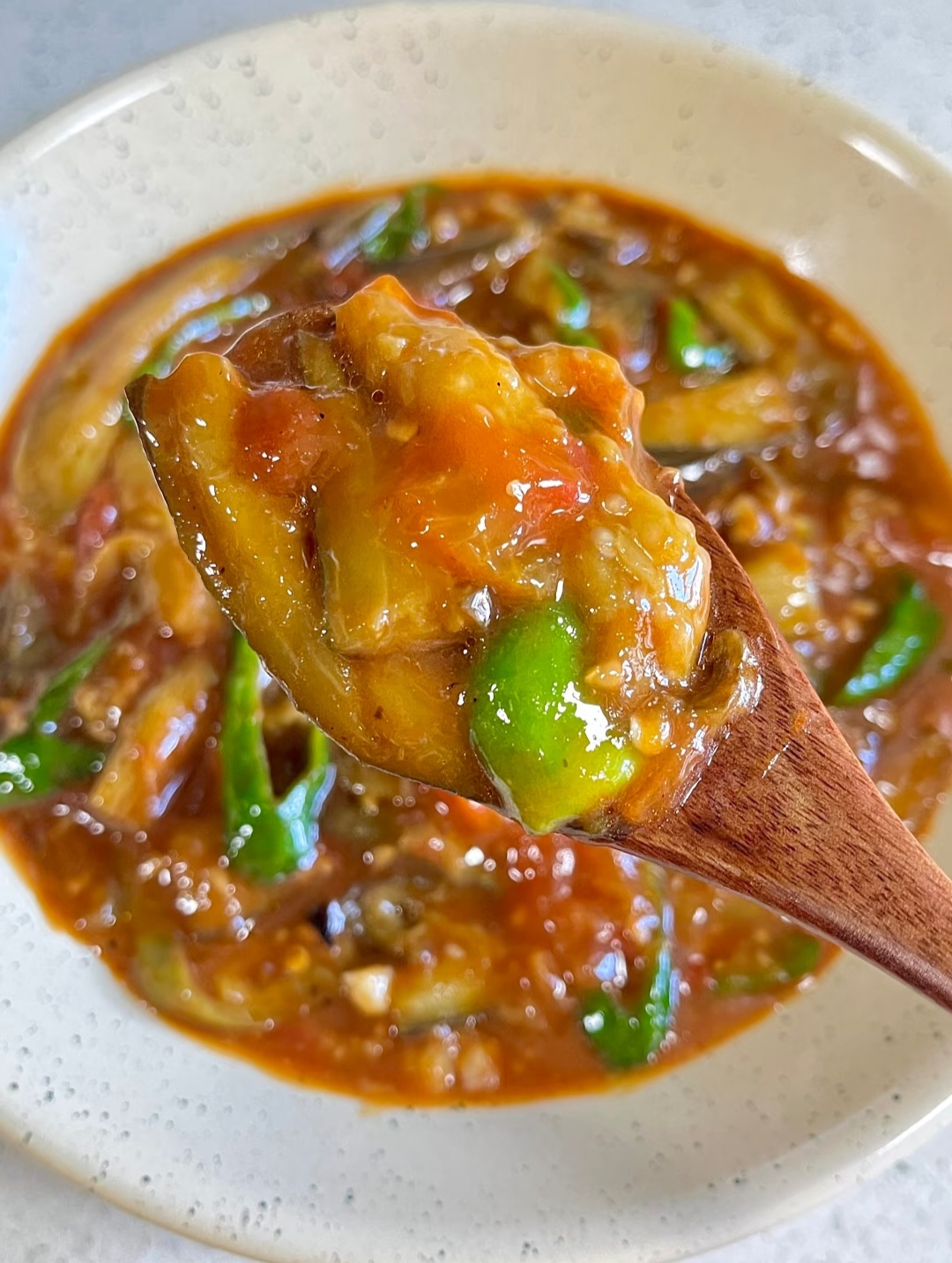 盛一碗热米饭,中间压个小窝,把茄辣西连汤带料浇上去,让汤汁顺着米缝渗到底。第一口先挖半勺茄子,绵软带番茄酸;第二口夹青椒,脆辣提神;第三口拌匀,米饭粒裹满红亮酱汁,嘴巴瞬间“支棱”起来。别顾形象,呼噜呼噜吃到鼻尖冒汗,才是对茄辣西最起码的尊重。