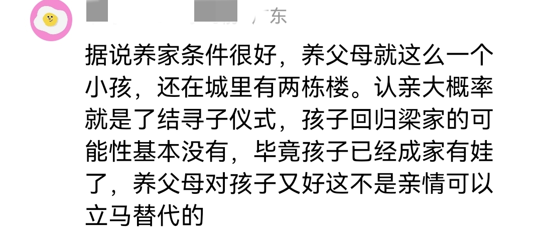 梁志辉找到了,梁志辉爸爸和妈妈说认亲仪式暂时还没确定什么时候,要等梁志辉有空才办。