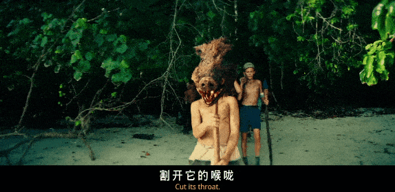 当杰克等人把脸涂得五花八门,躲在假面具背后,摆脱了羞耻感与自我意识的孩童便开始不断地释放野性。