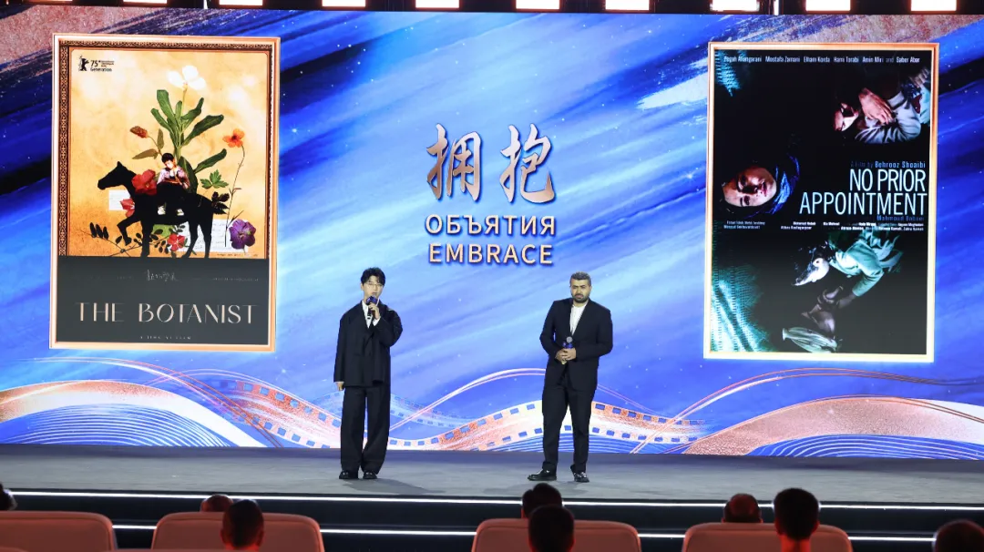 开幕式上,中国导演唐季礼、景一、乌尔善,与哈萨克斯坦演员阿黛玛·叶尔江诺娃、伊朗制片人马哈茂·得巴巴伊、哈萨克斯坦导演达尔汗·图勒格诺夫,六位中外影人围绕“对话”“拥抱”“信念”三组关键词,以影视作品为桥梁,讲述隐藏在电影故事里的传统之爱与伦理之美。