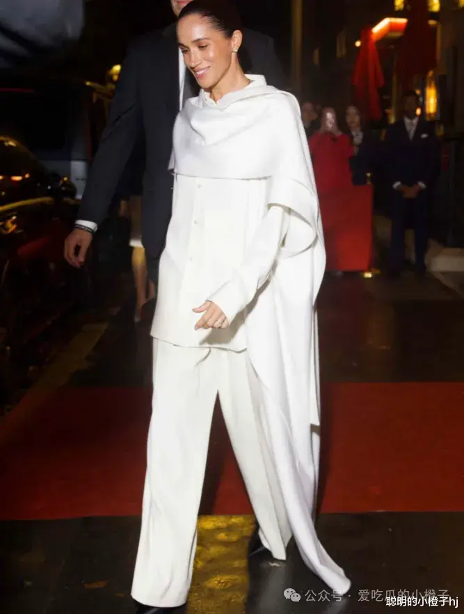 当天,梅根穿着一袭纯白色的礼服,典型的职业套装,扎起了头发,一丝不苟,如同真正的女强人一般,干练有劲,每一处都是那么的完美有型,
