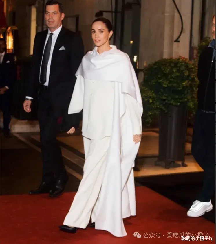 只是,这身礼服确实是高大上,十分大气,典雅,但梅根那梨形身材,并没有将这件巴黎世家的大礼服完美的展示出来,过于小家子气了!