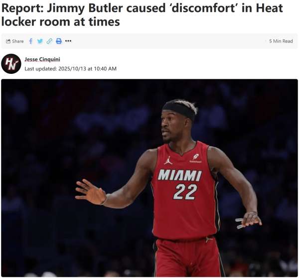 在效力热火队期间,巴特勒两次带领热火队打人总决赛,期间更是上演黑八奇迹。但是在热火队的最后一个赛季中,巴特勒与球队的关系非常不融洽,最终他被交易到了勇士队。对此,热火队记者Jesse Cinquini曝光了一些巴特勒在迈阿密时期的黑料。