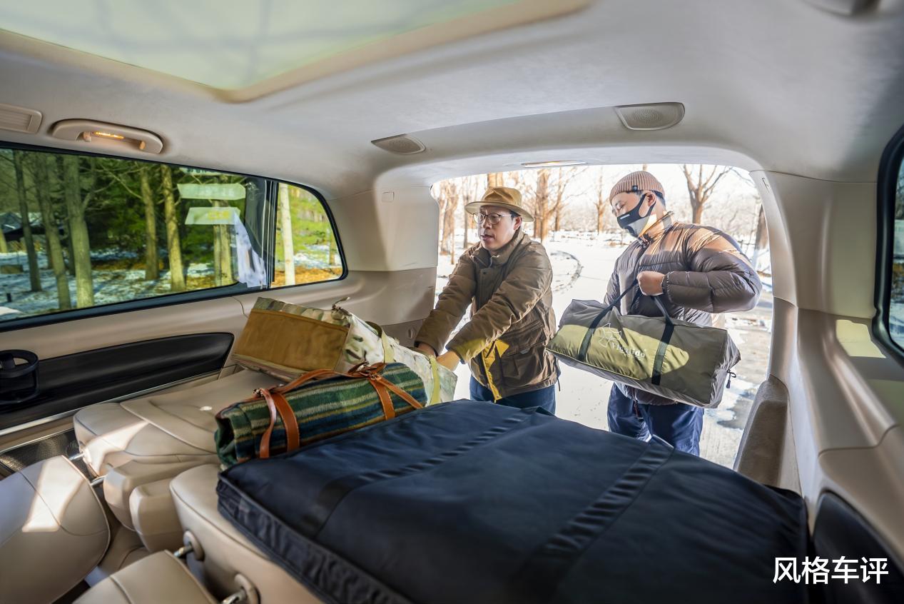 侧滑门缓缓开启,瞬间切换至欢情模式,3844mm 超大内部有效车长搭配 1410L 后备箱容积,让露营装备的装载无需取舍。帐篷、折叠桌椅、烧烤炉、露营行囊,甚至还有朋友带来的户外投影仪,都能轻松收纳,不必为 “带什么、舍什么” 而纠结。