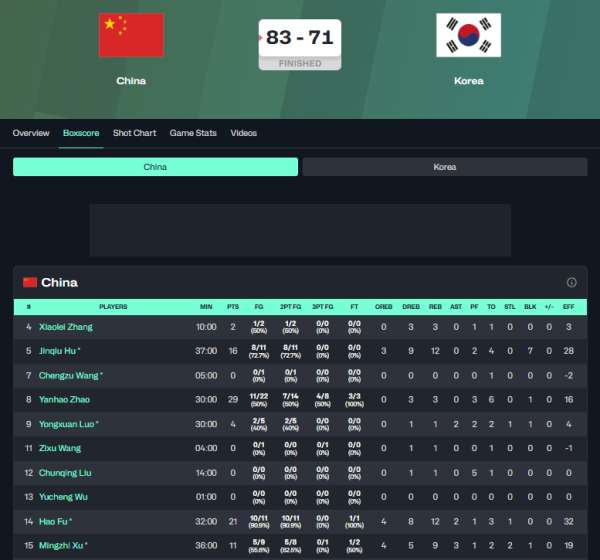 第二阶段第三场中国男篮83比71战胜韩国。