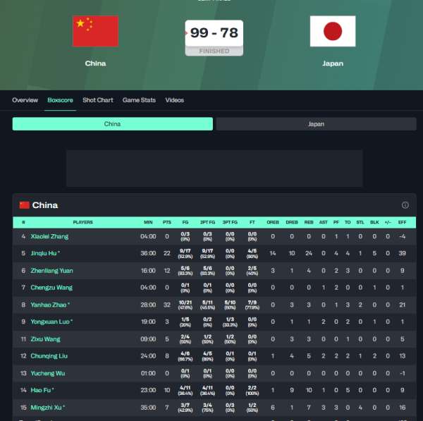 赵岩昊火力全开的一场比赛,砍下32分,胡金秋打出“20+20”超大号两双的表现,日本男篮并未对中国男篮造成实质性威胁,最终中国男篮以21分大胜晋级决赛。