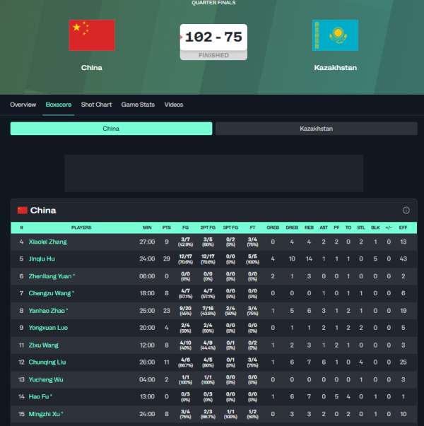 又是一场比分悬殊的比赛,哈萨克斯坦男篮与中国男篮有较大差距,中国男篮大胜27分,晋级四强。