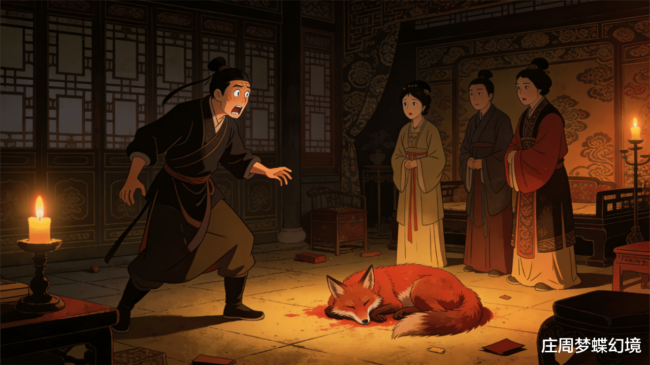王九思点亮蜡烛一看,地上哪里是什么女子,分明是一只死狐狸。他还是怕它再活过来,急忙喊家人进来,剥了狐狸皮挂在墙上。没过多久,王九思的病情越发严重,迷迷糊糊中看见那只狐狸走来,对他说:“我已经到地府告状了。判官说董遐思见色起意,死得不冤;但责怪我不该迷惑凡人,收走了我的修行内丹,让我还他性命。我的身体呢?”