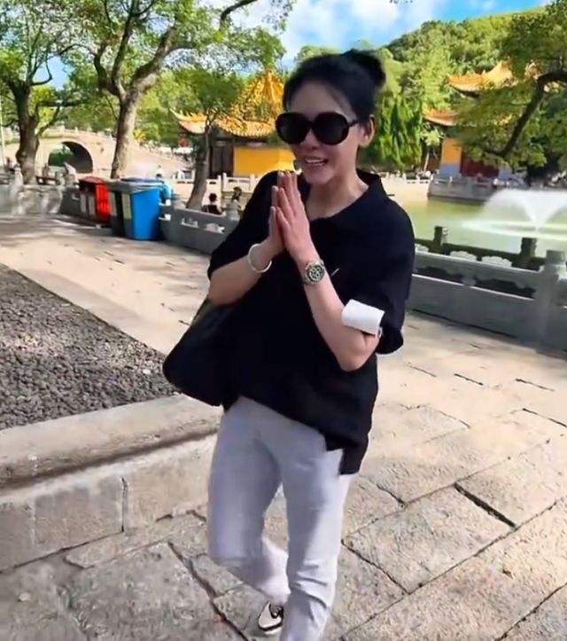 近日,有网友在浙江舟山的普陀山风景区游玩时,偶遇了来普陀山祈福的邱淑贞。