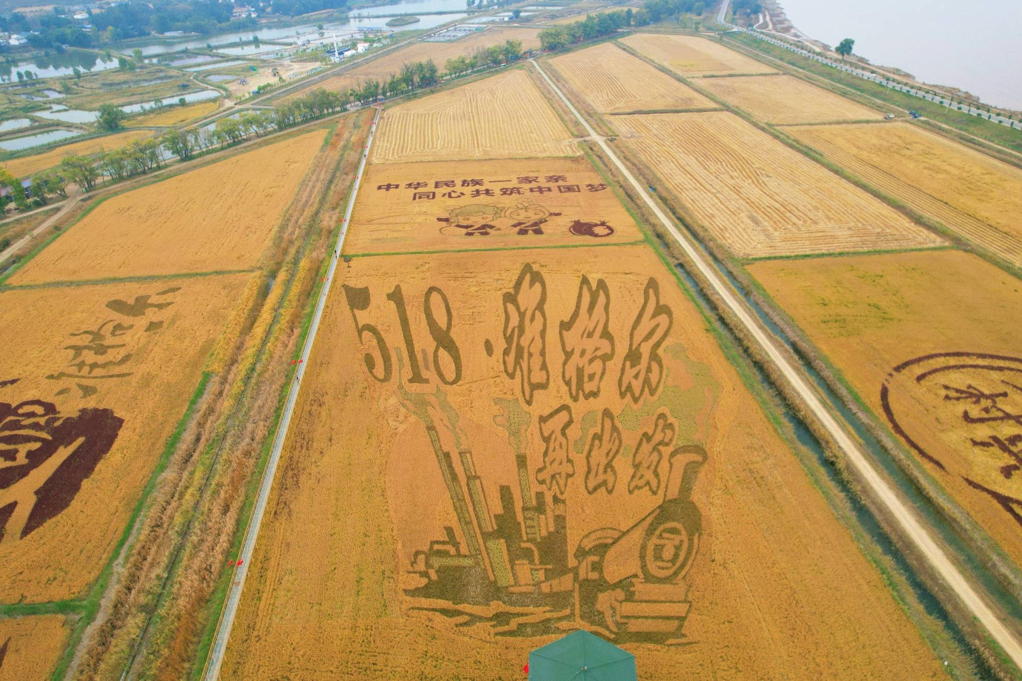 从空中俯瞰稻田,仿佛在观赏着一场盛大的秋季大地艺术展。大片金黄的田里描绘着一幅幅生动的稻田画,大地为画布,稻禾就是最好的颜料,每一幅画作都震撼人心。