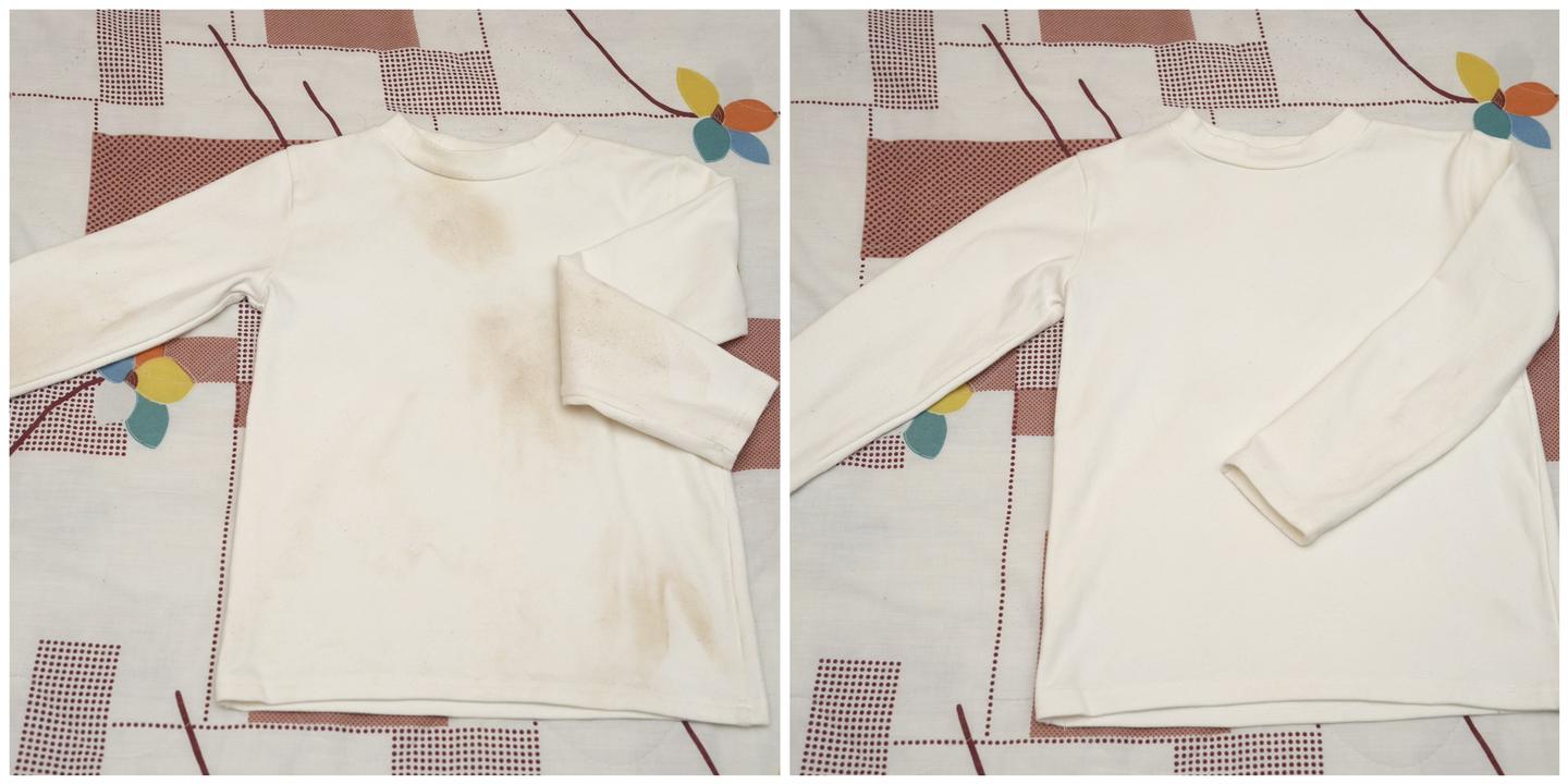 具有活水精华洗功能的海尔云溪复式洗护中心对于T恤衫上不小心蹭上的污渍清洁十分到位,15分钟的快洗过后,衣物便恢复洁净如初。