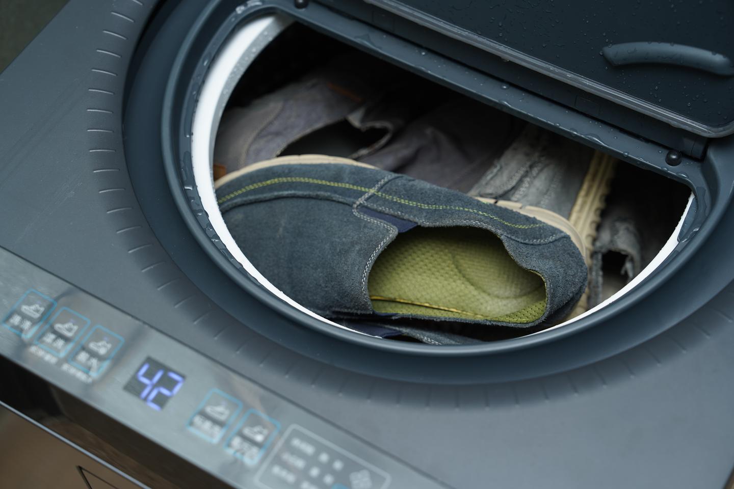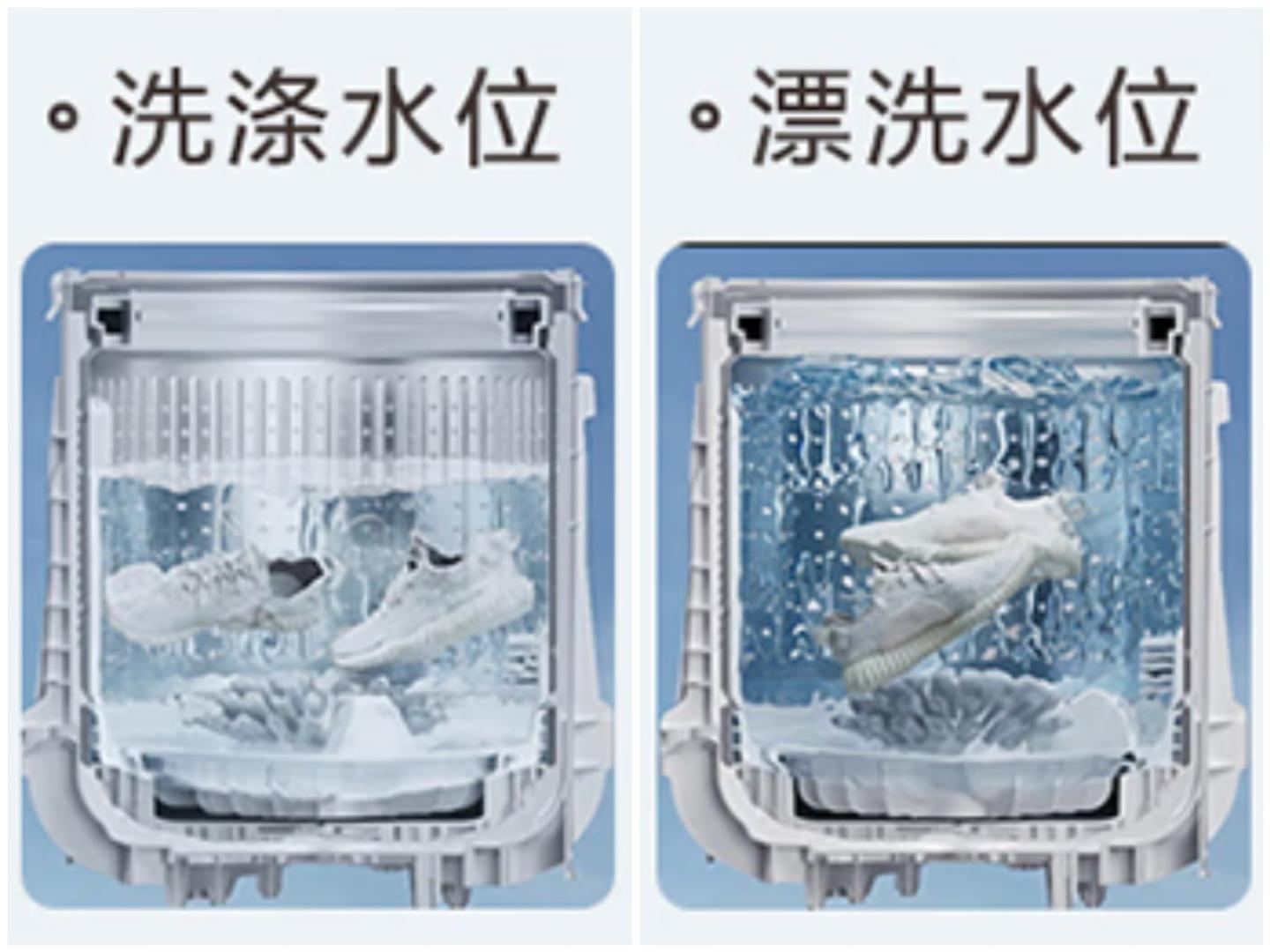 洗鞋跟洗衣的整体流程都差不多,都是洗涤、漂洗、脱水三步走,更设计了分段水位智能控制水流清洗鞋子,一个循环搞定鞋子清洁。