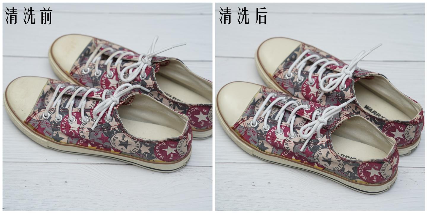 帆布鞋的清洁也很省心,橡胶部分、帆布面、脏污的鞋带也都得到了有效清洁。