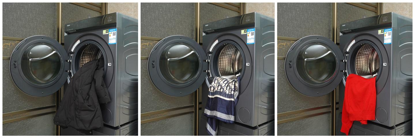 海尔云溪复式洗护中心的直驱电机可以驱动内筒转动实现90°的摇篮柔洗,适合真丝等娇贵面料的衣物、领巾进行日常洗护。