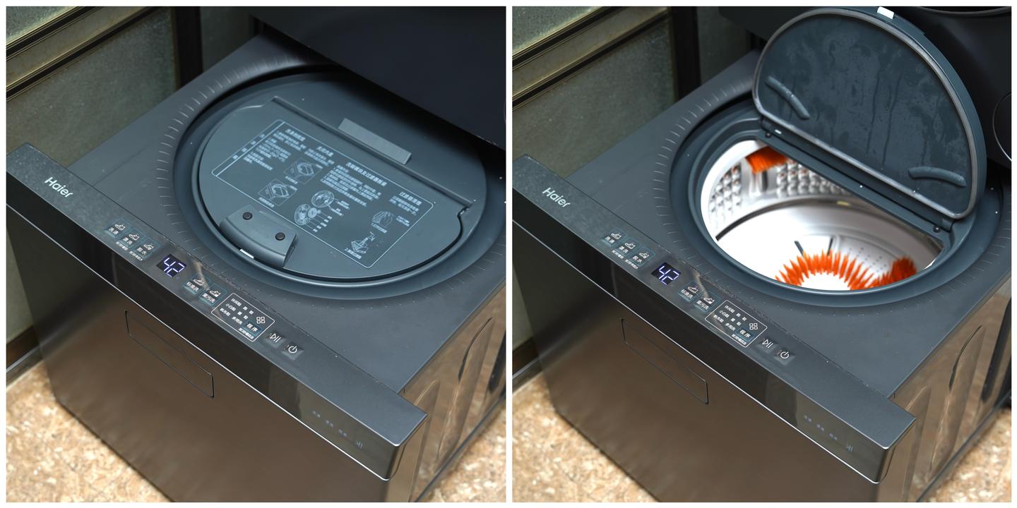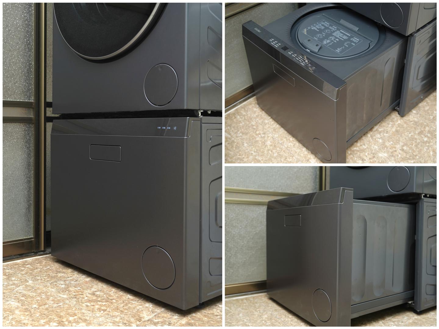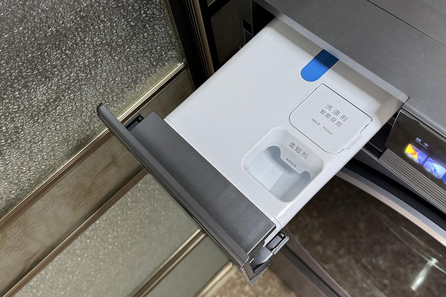 洗护中心的洗衣滚筒高度就让人很舒服,放衣、取衣无需弯腰,很符合日常使用习惯。