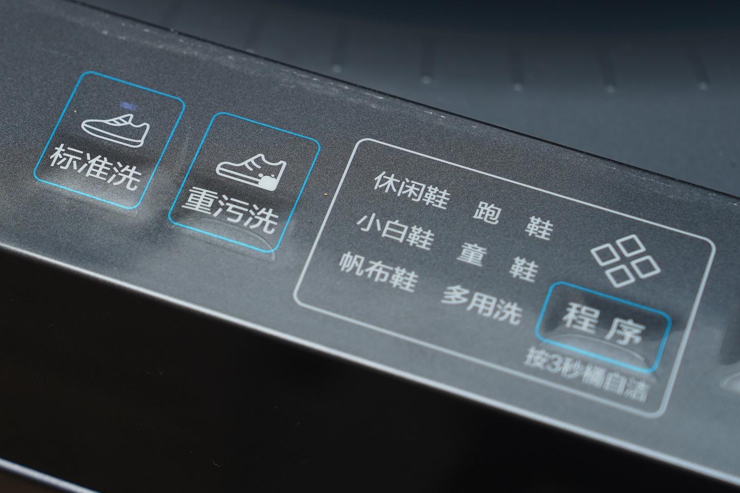 多种鞋子轻松洗这台抽屉式洗鞋机预设了休闲鞋、跑鞋、小白鞋、帆布鞋、童鞋多种鞋子的洗涤程序,功能选择也十分直观。