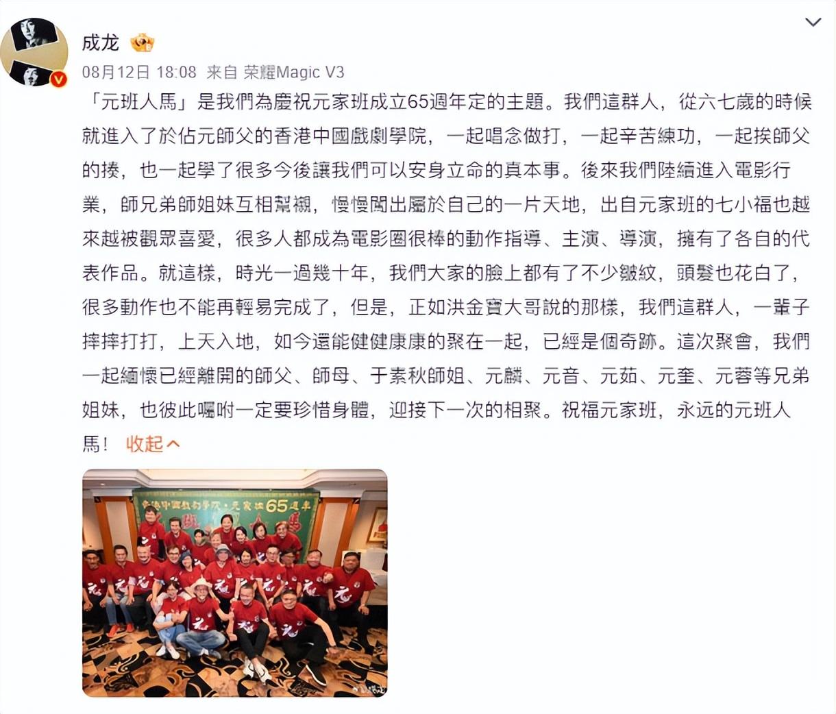 刚刚突传噩耗!“安全第一”元奎去世,8 月 12 日,成龙发文纪念元家班成立 65 周年的消息让大家心生感慨,而其中提到