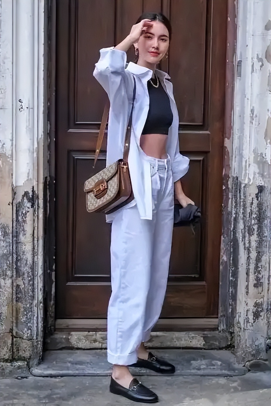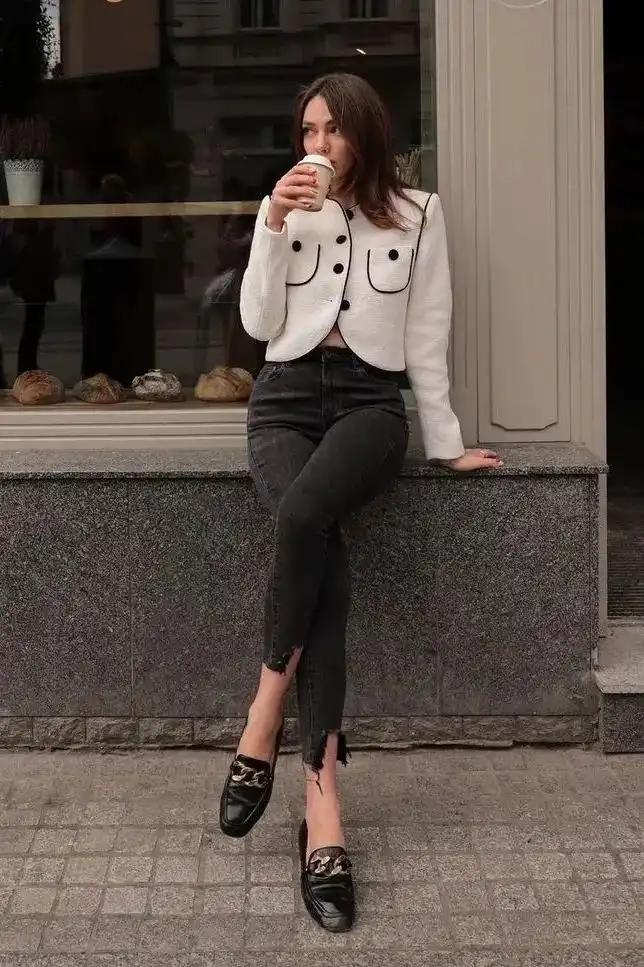 如果你是上班族,想要在通勤穿搭中展现出简约大方的气质,可以尝试将九分裤与乐福鞋进行搭配。选择一条黑色的九分裤,搭配一件白色的衬衫,再配上一双黑色的乐福鞋,整个造型干练利落,非常适合职场穿搭。