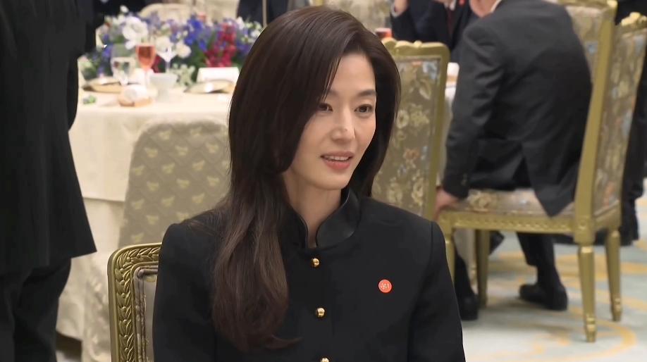 更加让不少喜欢明星的小伙伴有眼福了,在这么多人中,韩国顶流女演员全智贤也来参加这个午宴了,从曝光的画面我们可以看出,全智贤穿一件深蓝色的立领黑色上衣,披散这长发状态非常好,看起来比之前还要消瘦了一圈,还有网友感觉这次全智贤是素颜出镜,没有在荧屏上好看,记得当初全智贤凭借《我的野蛮女友》火遍亚洲,后续《来自星星的你》《蓝色大海的传说》等作品更是风靡全球,是韩流代表人物之一。这次来参加为马克龙举行的午宴引起不少网友的围观。