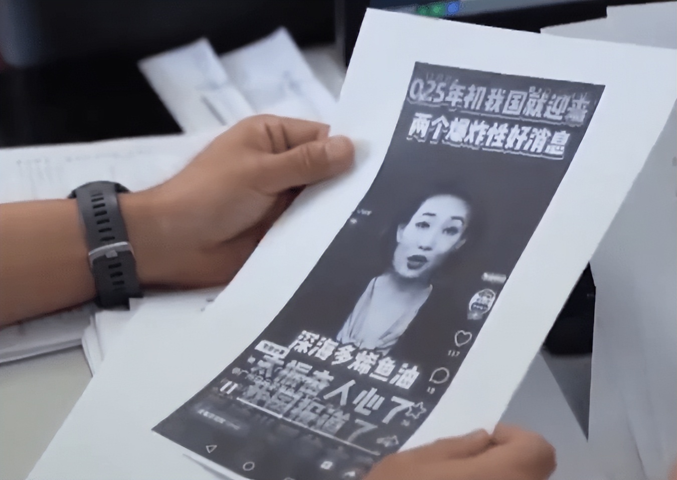 事情发生在2月,当时有人在北京一家公司的直播间里看到了“李梓萌”,对方正拿着一款“深海多烯鱼油”介绍功效,说能解决头晕、头痛、手脚发麻这些问题。