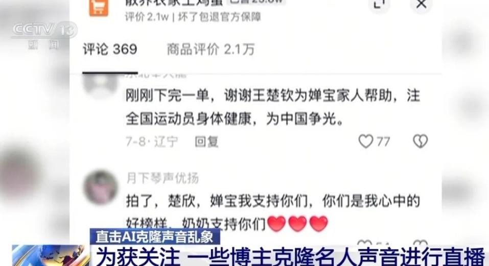 比如奥运冠军全红婵,就有人用AI克隆了她的声音,在短视频里卖起了土鸡蛋。