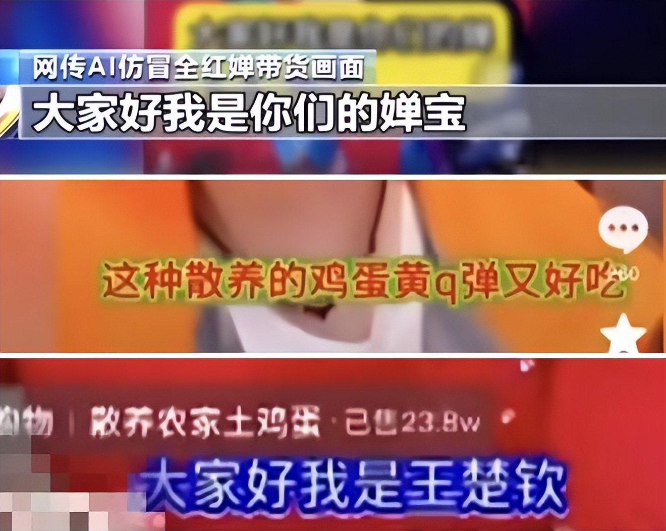 有个账号仿冒孙颖莎的声音,说“我为婵宝家鸡蛋代言”,还仿冒王楚钦说“婵妹让我给粉丝带福利”。