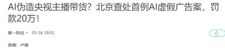 到了6月份,这家公司被正式处罚,罚了20万,这也是北京查处的第一起AI虚假广告案。