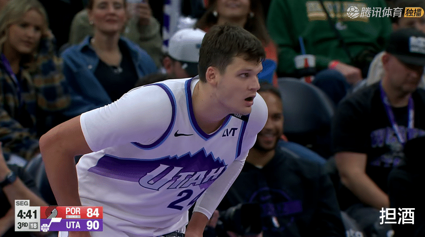 爵士全力反扑,奈何开拓者总能及时给出回应,继续保持微弱领先,打了4分多钟,杨瀚森再次登场。