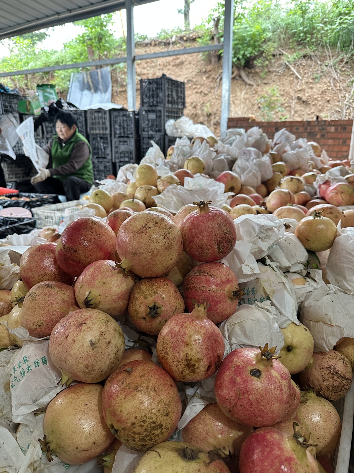 因为中秋已过,人们对石榴的购买需求降低,往年到地头的批发商也不见了踪影。各种因素的叠加,让今年的石榴销售出现困难。。