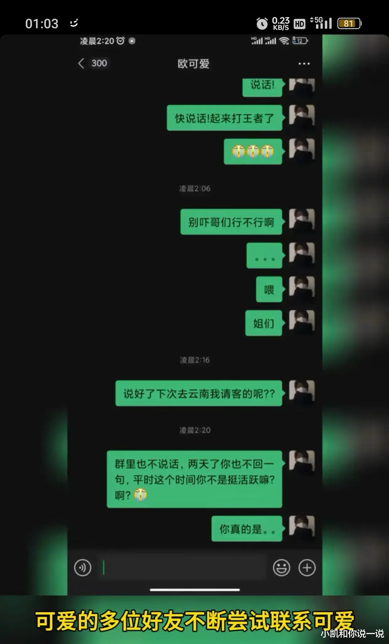 事发之后,许多好友尝试联系欧克爱,但均未得到回应。从其中一位好友聊天消息中可以看出欧克爱喜欢打王者荣耀,但是恐怕以后再也不能跟她一起打了……